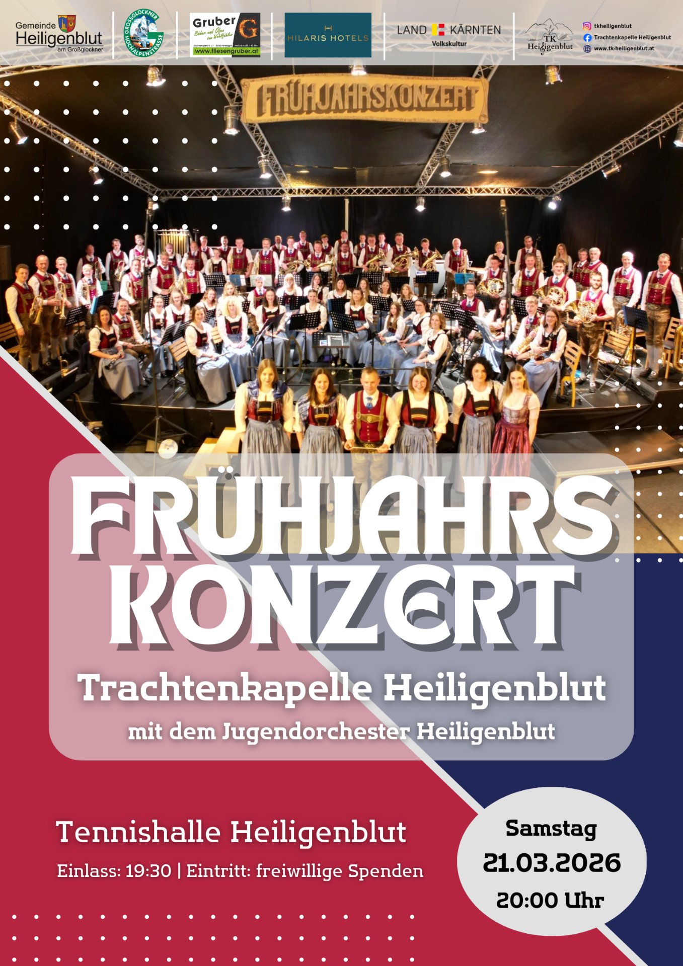 Es freut uns sehr, Sie auf der Homepage der Trachtenkapelle Heiligenblut willkommen zu heißen. Uns eint die gemeinsame Leidenschaft für Musik, die Jung und Alt gleichermaßen begeistert. Diese Leidenschaft findet ihren Ausdruck sowohl in unseren musikalischen Darbietungen als auch in der herzlichen Kameradschaft, die wir pflegen. Unter der versierten Leitung unseres Kapellmeisters Stefan Kosian gestalten wir ein vielfältiges Programm musikalischer Veranstaltungen – von Frühjahrskonzerten über Abendkonzerte bis hin zu kirchlichen Feierlichkeiten.
